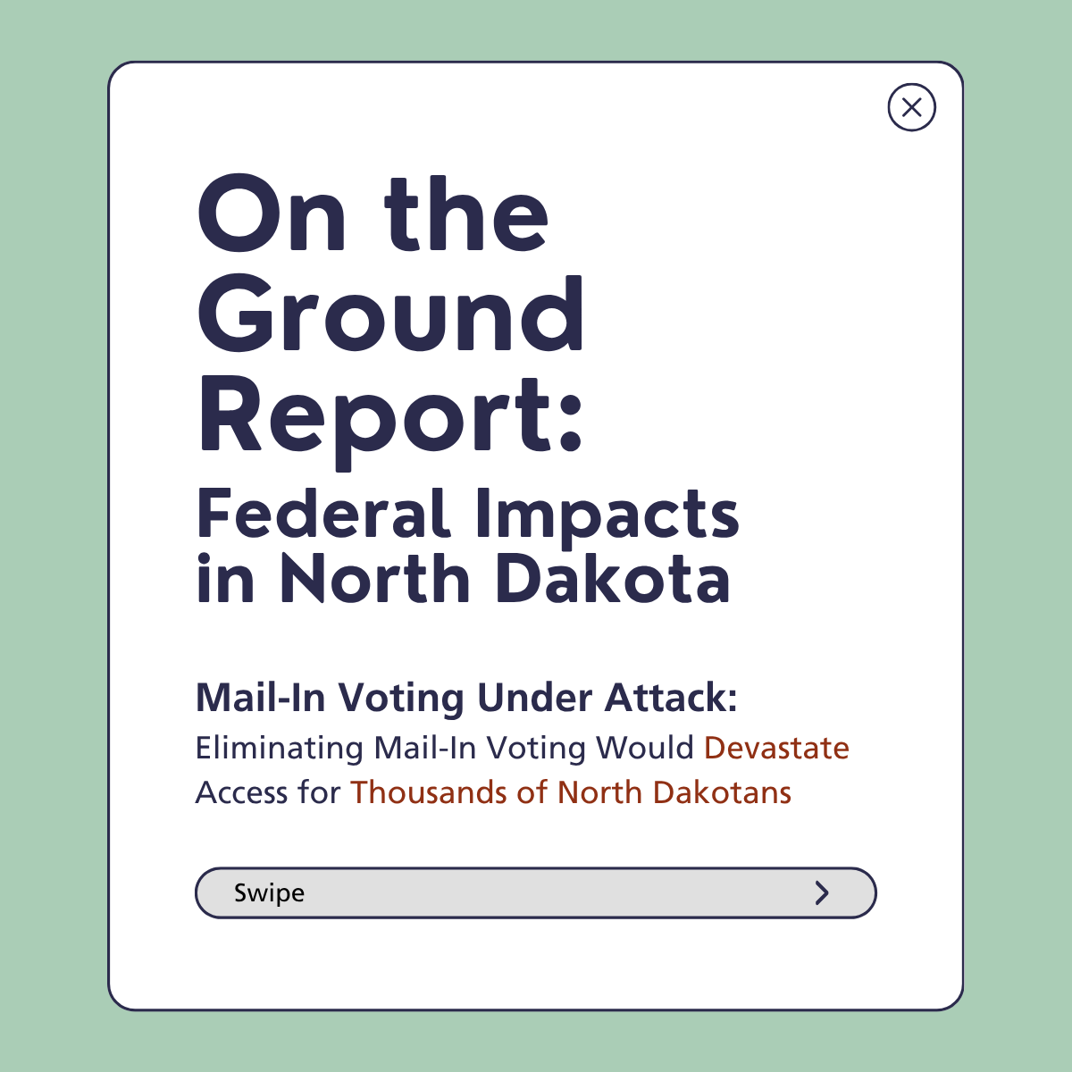 That means changes to mail-in voting hit ND voters especially hard: rural communities, Native voters, seniors, and voters with disabilities are most at risk.