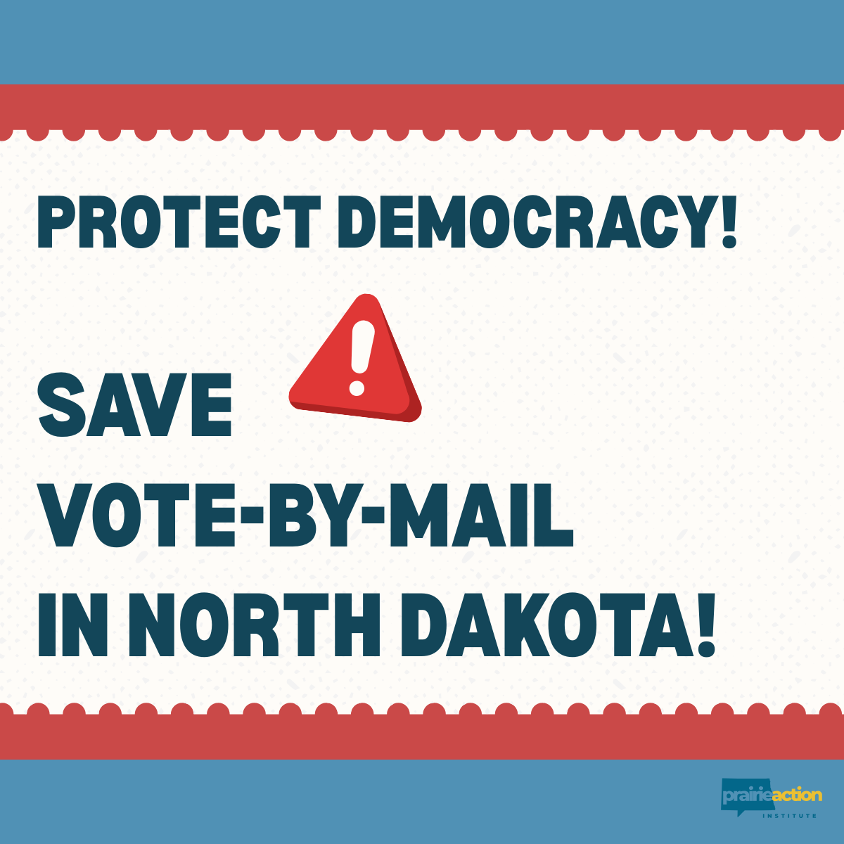 Click HERE to take action and send a letter to North Dakota Secretary of State Michael Howe and urge him to preserve voting-by-mail in North Dakota!